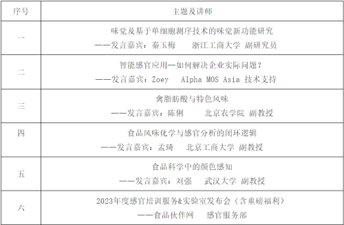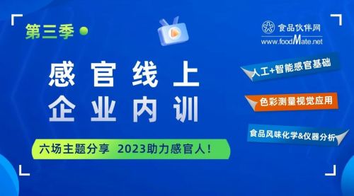 1天6場(chǎng)感官主題分享,包含人工+智能感官基礎(chǔ)(味覺(jué)、嗅覺(jué))、食品風(fēng)味化學(xué)&儀器分析、色彩測(cè)量視覺(jué)應(yīng)用等多個(gè)主題分享,更有豐富的案例實(shí)踐分享,還有2023年度感官培訓(xùn)服務(wù)/實(shí)驗(yàn)室服務(wù)發(fā)布會(huì)等多個(gè)環(huán)節(jié),年初為每一位食品人提供線上免費(fèi)感官學(xué)習(xí)交流的機(jī)會(huì),我們一起,充好了電,蓄好了能,2023整裝待發(fā)!