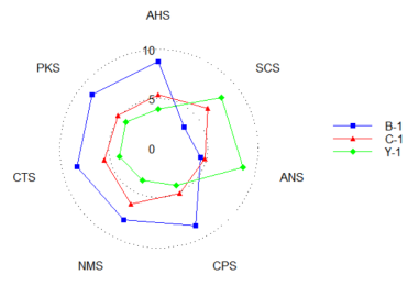由圖5可知,3個不同品牌的青稞罐頭樣品在酸味、咸味、咸味上的排序是一樣的,從小到達(dá)分別是Y-1、C-1、B-1。