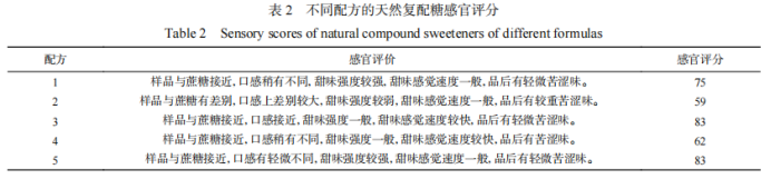 1.經(jīng)感官評價(如表2)分析得到樣品3和8%蔗糖溶液的甜度相似。