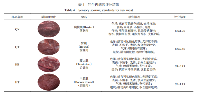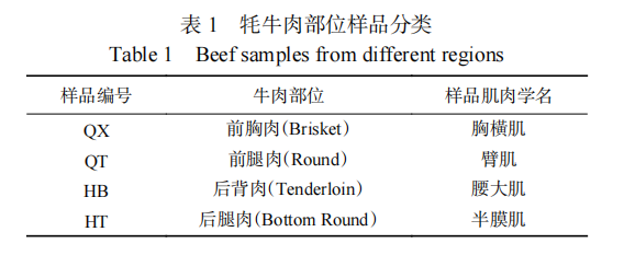 青海省牦牛養(yǎng)殖數(shù)量位居全國(guó)第一,牦牛肉烤制后風(fēng)味深受消費(fèi)者喜愛(ài),但不同部位風(fēng)味、肉質(zhì)差異較大,要尋找最適合燒烤的牦牛肉部位,需要對(duì)牦牛肉不同部位的滋味、氣味和風(fēng)味特征進(jìn)行研究。