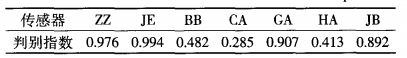 表1 傳感器對樣品的判別指數(shù)