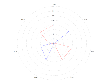 以電子舌所測(cè)的樣品相對(duì)的酸咸鮮排序數(shù)據(jù),繪制基本的滋味雷達(dá)圖。