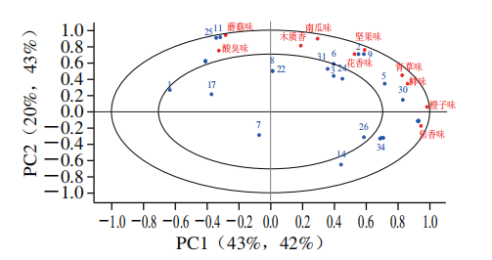 參考文獻(xiàn):黨昕,劉軍,姚凌云等.GC-MS結(jié)合GC-O、電子鼻評價(jià)不同預(yù)處理方式對沙棗風(fēng)味的影響[J].食品科學(xué),2023,44(06):327-335.