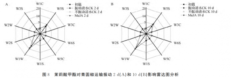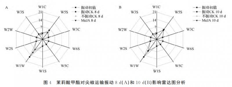 茉莉酸甲酯對青圓椒運輸振動影響雷達圖分析
