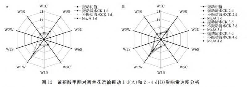 茉莉酸甲酯對西蘭花運輸振動影響雷達圖分析