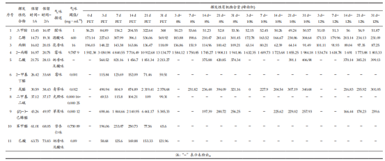 通過正構烷烴標樣計算保留指數(shù),利用AroChembase數(shù)據(jù)庫將0d樣品與所有樣品的差異色譜峰分別進行定性及含量分析,可能含有的揮發(fā)性化合物見表3,此次試驗所用儀器為質(zhì)量型檢測器-氫離子火焰監(jiān)測器,揮發(fā)性化合物含量的多少表征在峰面積上,表3中呈現(xiàn)了不同揮發(fā)性化合物的峰面積。結果顯示,三甲胺、乙醇、2-丙醇的含量隨著時間的增長也隨之增長,在未阻隔的透明PET瓶樣品中增長尤為明顯。戊醛作為光敏作用的產(chǎn)物之一,其存在于透明PET瓶所有檢測時間點內(nèi),阻光色油8%和10%阻隔PET瓶的7~31d,阻光色油12%阻隔PET瓶14~31d,且該物質(zhì)在透明PET瓶中的含量要遠高于阻隔PET瓶。12%阻隔PET瓶中檢測到的時間晚于8%和10%阻隔PET瓶,可見稍高的質(zhì)量分數(shù)對戊醛的產(chǎn)生有一定的延緩作用。2-甲基丁醛、二甲基二硫、苯甲醛和己酸僅在未避光的透明PET樣品檢測到,在14d達到頂峰而后下降。Kim等的研究表明,戊醛、2-丙醇和二甲基二硫是由光敏作用產(chǎn)生的,二甲基二硫會隨著光照時間的增加,濃度不斷增加。乙酸具有奶香味及酸味,可能存在于所有樣品,不同的是該化合物在透明PET瓶中的含量顯著高于有避光措施的阻光色油PET瓶樣品,其隨著光照時間的延長,乙酸含量也隨之增加。苯甲醛作為牛奶光氧化的特征化合物,在一定程度上表征了牛奶的品質(zhì)情況,其含量愈高品質(zhì)愈下降。由表3所示,苯甲醛出現(xiàn)在透明PET各時間點的樣品中,14d時最高,之后下降趨于平穩(wěn),結合感官品評結果來看,該樣品3d時非培訓型評價員的整體喜好度已處于接受程度以下,可見光照嚴重影響了鮮牛奶的整體感官品質(zhì)。