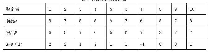 如果t>t表,則兩種食品之間存在顯著差別;如果t<t表,則兩個食品之間無顯著差別。