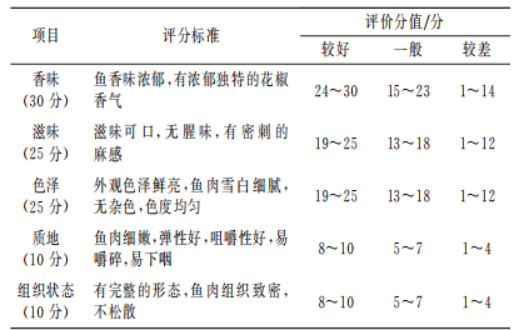 表1 花椒魚片感官評價標準
