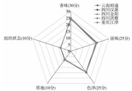 青花椒產地對花椒魚片感官評分的影響