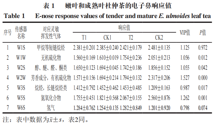 電子鼻分析蒸汽爆破對(duì)杜仲嫩葉和成熟葉茶香氣特征的影響