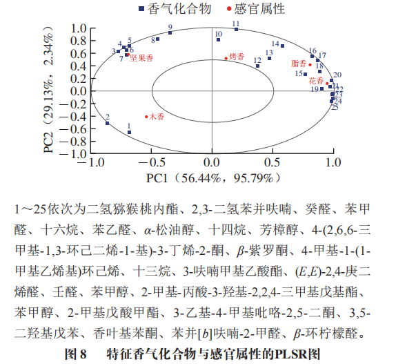 3.3 特征香氣化合物與感官評(píng)定之間的相關(guān)性分析