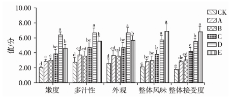 圖1 不同烹飪熟度的牛排感官評價