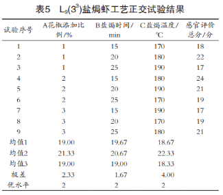 感官評價(jià)鹽焗蝦工藝優(yōu)化