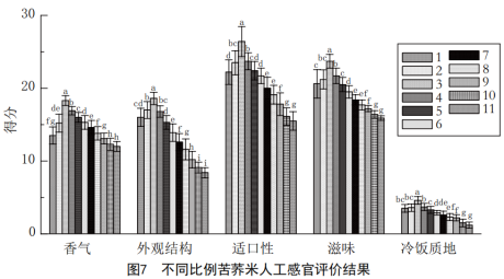 2.4不同比例苦蕎米飯的人工感官評(píng)價(jià)分析