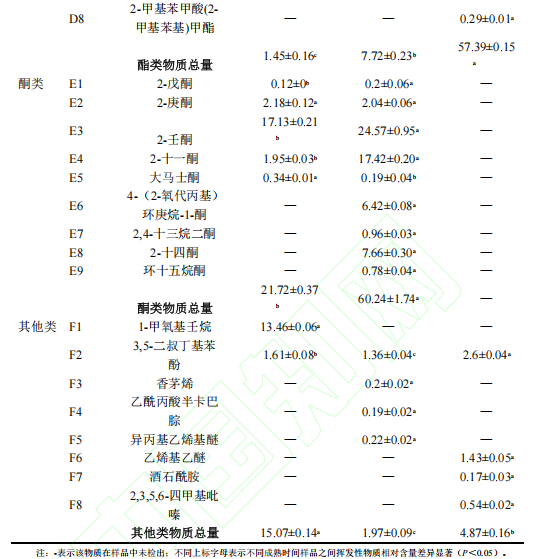 表1 發(fā)酵前后濃汁中揮發(fā)性風(fēng)味物質(zhì)含量