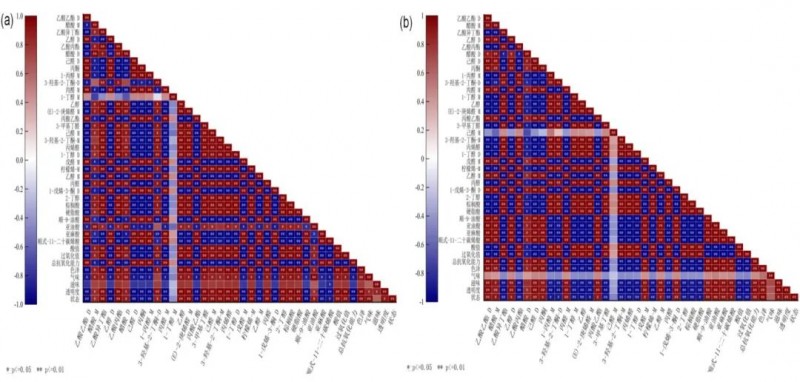 綜上所述,相關(guān)性分析雖然可以幫助識(shí)別各因素之間潛在的關(guān)聯(lián),但核桃油風(fēng)味的形成是多種因素共同作用的結(jié)果,涉及眾多貢獻(xiàn)成分的綜合作用。因此,深入探究導(dǎo)致這些風(fēng)味物質(zhì)關(guān)聯(lián)的潛在機(jī)制,將成為未來的重要研究方向。